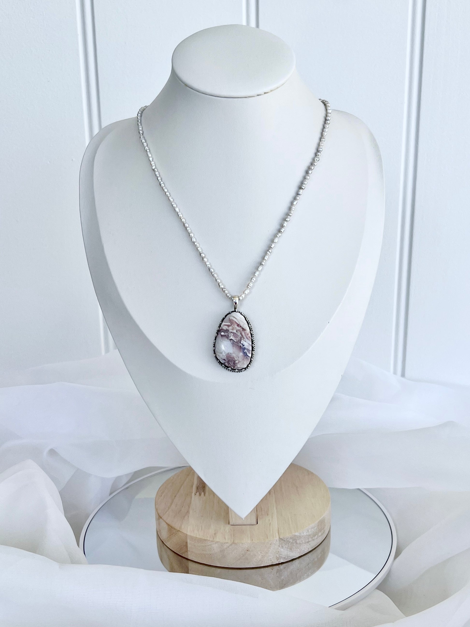 Journey into the ethereal world of Hyacinth Jasper, a gem whispered to be born from the heart of Utah’s mystical landscapes. With its dreamy palette of pink, purple, and creamy white hues—kissed with the occasional hint of serene grey-blue, much like the elusive Tiffany Stone—this enchanting crystal is more than just a visual delight. It’s a gentle invitation to unlock the deepest chambers of your heart and spirit.