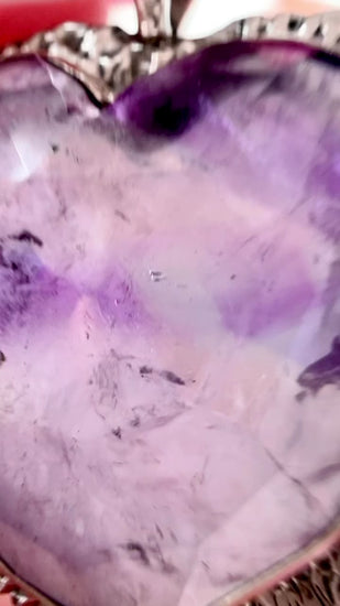 The Oracle Heart is a talisman of quiet power. A piece that feels ancient, intuitive and deeply personal. Crafted from rare faceted trapiche Amethyst, its natural star-like pattern forms a spiritual compass at the centre of the heart, guiding you inward toward clarity, alignment and deeper self trust.